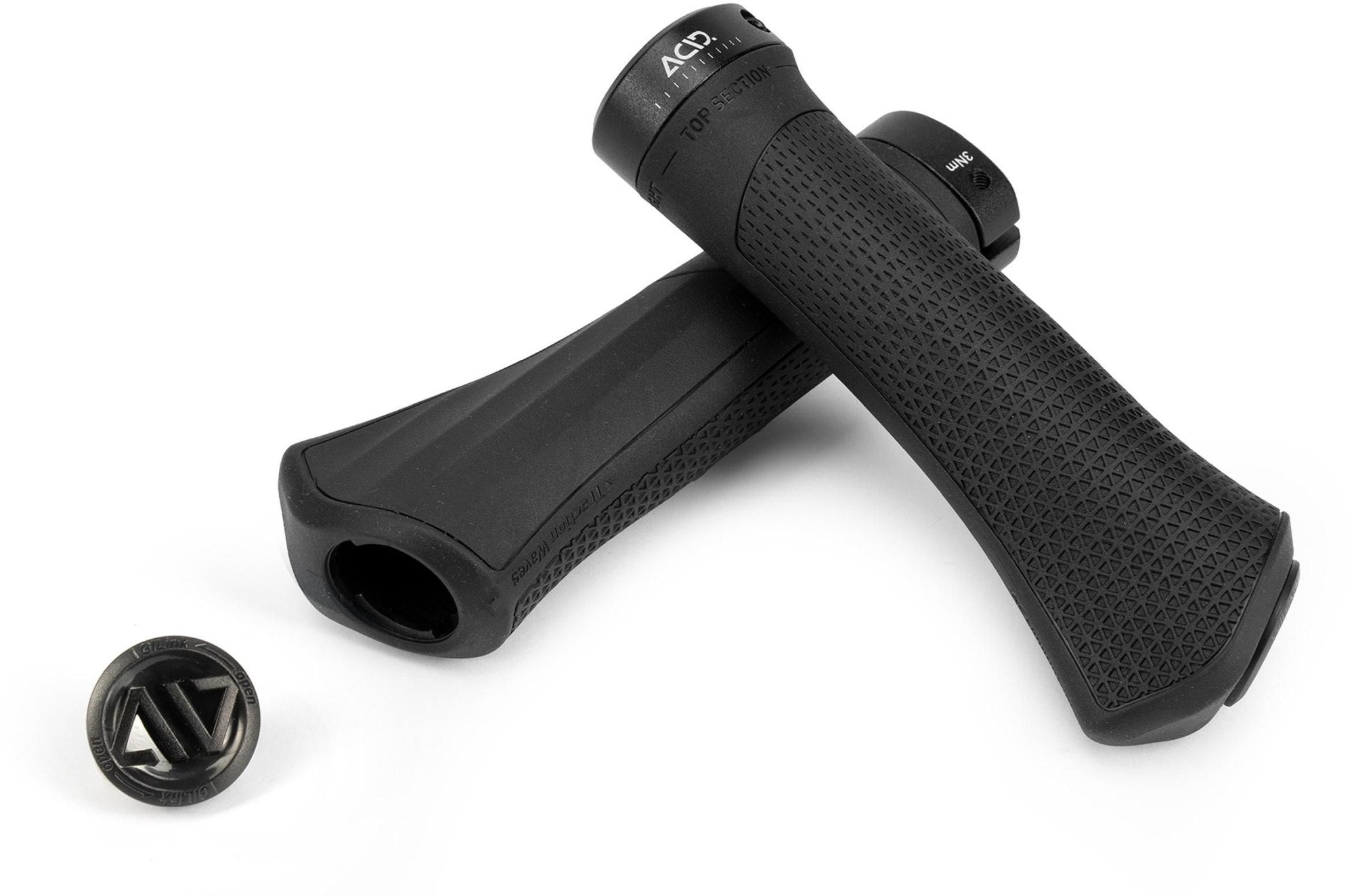 Natural Fit-filosofie toegepast voor een optimale mix van grip en ondersteuningCurved Contour-minivleugel ter ondersteuning van de polsTraction Waves-aan de onderzijdeKlemring aan de binnenzijdeVerkrijgbaar in twee matenACID GILink-koppeling voor bar-ends of een spiegel