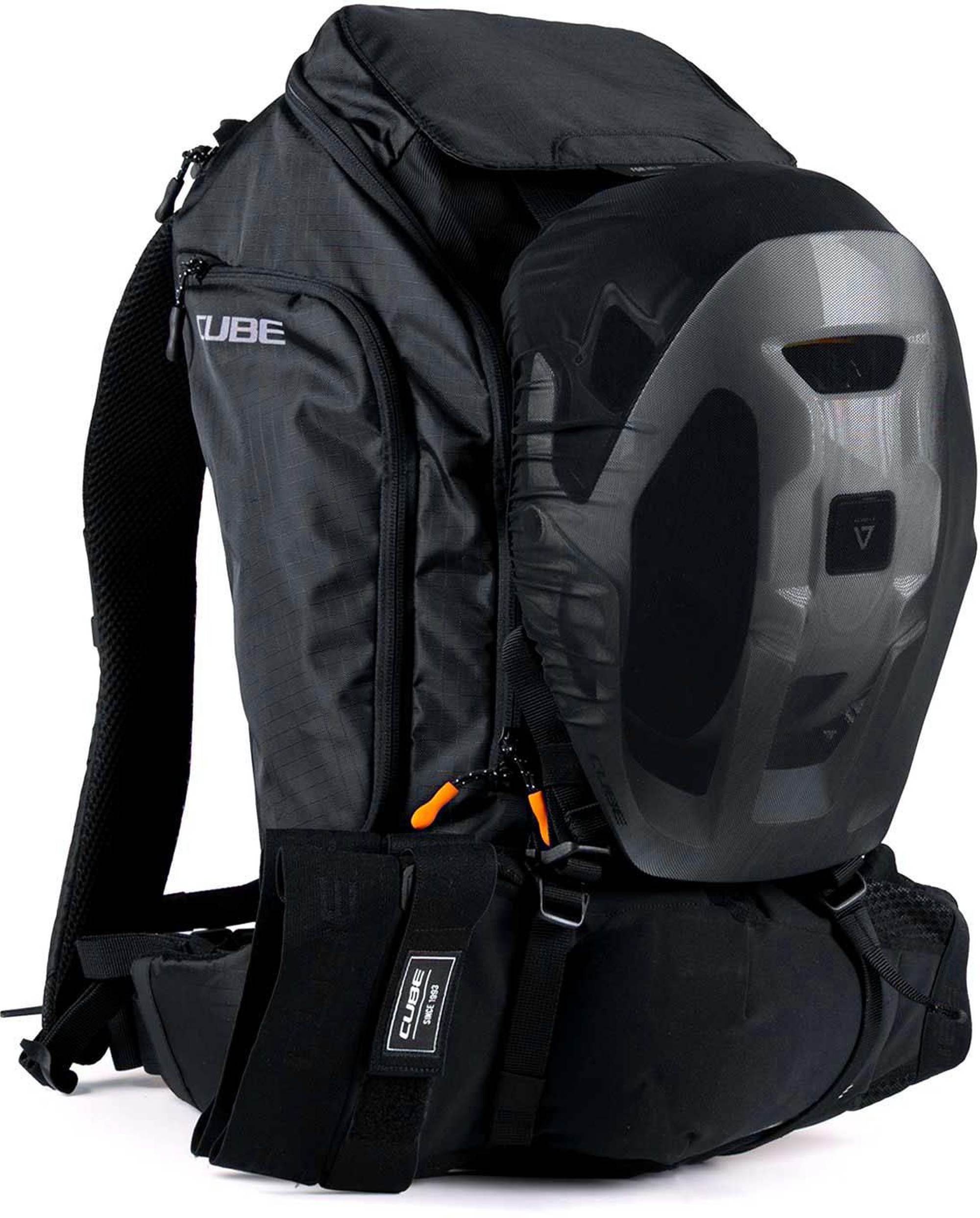 De CUBE ATX 22 heeft ruimte voor alles dat je tijdens lange tochten nodig hebt. Ons Natural Fit-draaggsysteem biedt een hoog draagcomfort. Het gewicht wordt effectief verdeeld, terwijl strategische geplaatste ventilatiesleuven en kussentjes van gaasstof de rug fris houden. Op zoek naar meer ruimte? Dankzij het praktische MOLLE-systeem maakt je de CUBE GEAR BAG 1 snel en veilig vast. Compressiebanden aan de zijkanten zijn ideaal om je jas of beschermers snel op te bergen. Vanwege de doordacht ontworpen vakken, het extra gereedschapsvak en een zijvak voor je smartphone heb je de belangrijkste spullen binnen handbereik. En met een drinkzakvak en een regenhoes, heeft deze rugzak alles wat je nodig hebt om van je tocht succes te maken.