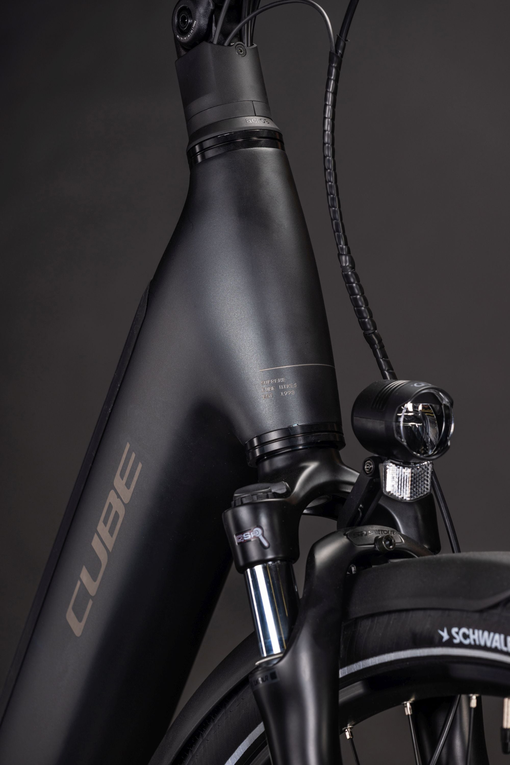 Maar het gaat natuurlijk niet alleen om het uiterlijk, maar ook om het rijgevoel. En dat moet vertrouwen wekken. De balhoofdbuis en de vorkbuis hebben daarom een grotere diameter, voor meer stuurprecisie en stabiliteit. En dat laatste geldt ook voor de semi-geïntegreerde bagagedrager. Twee fietstassen vol boodschappen? De Supreme Hybrid geeft geen krimp.