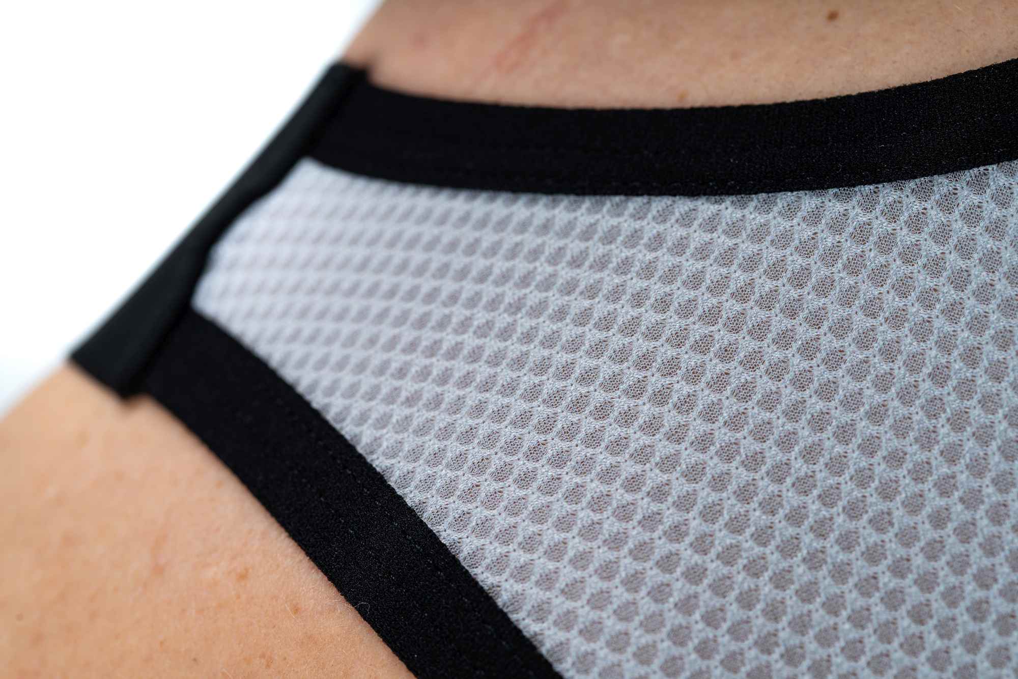 Lichte maar sterke technische stof, reflecterende applicaties, naadloze zoom met siliconenapplicaties, soepele bretels, ademende gaasstof in het rugpand, CUBE Team zeem - made in Italy.