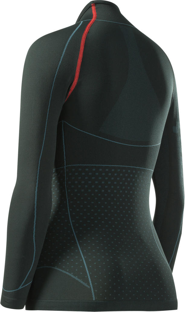 Onmisbaar als je 's winters doortraint. Dit functionele ondershirt reguleert op koude dagen je lichaamstemperatuur. Houdt je droog bij zware inspanning en warm als je tussendoor even een reepje staat te eten. Ontworpen volgens het bodymapping-principe, waarbij de ventilerende en ondersteunende segmenten perfect aansluiten op de menselijke anatomie. Dit naadloze shirt van een gifvrije mix van polyamide en polyester draagt aangenaam op de huid.